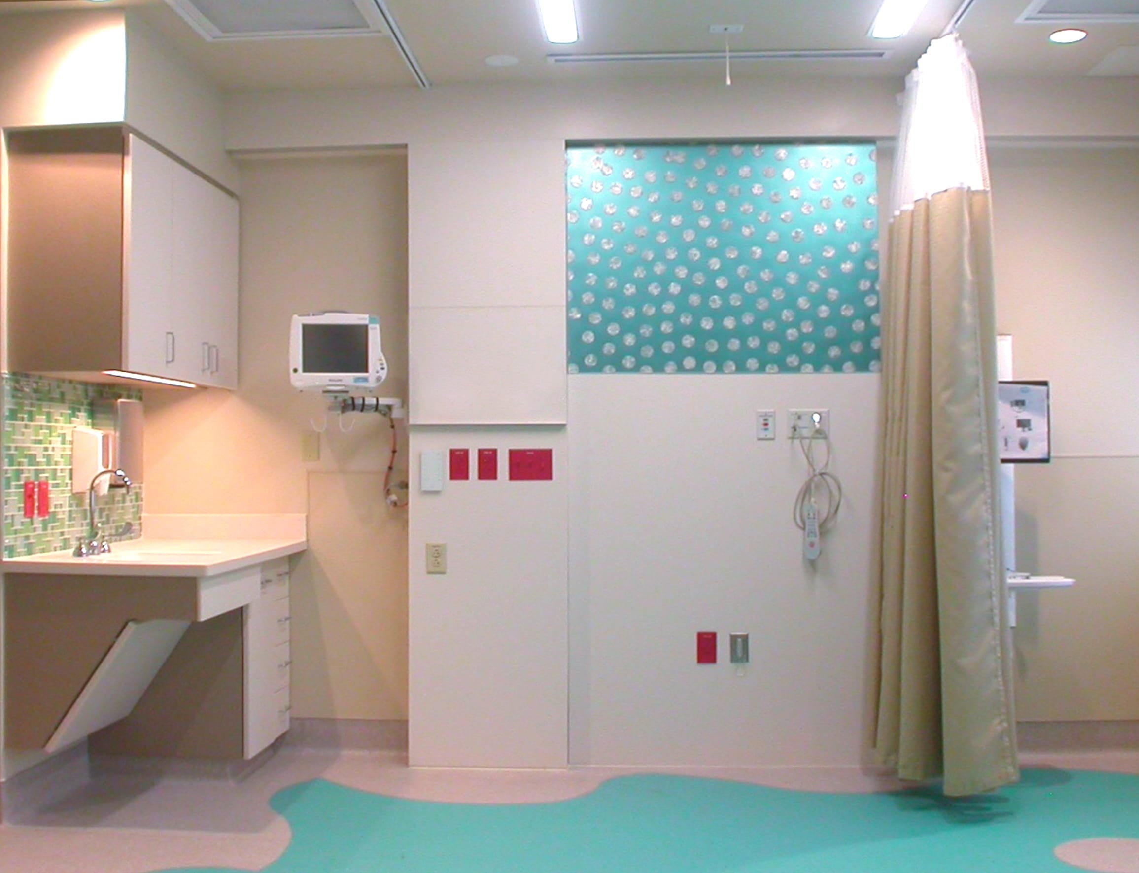 This custom headwall design combined elements of the Futrus Concealed Headwall and Futrus Compact Headwall, to create the ideal solution for this project. Medical outlets are concealed from patient view to create a calming environment and a playful, light reflecting panel has been integrated to provide visual stimulation.