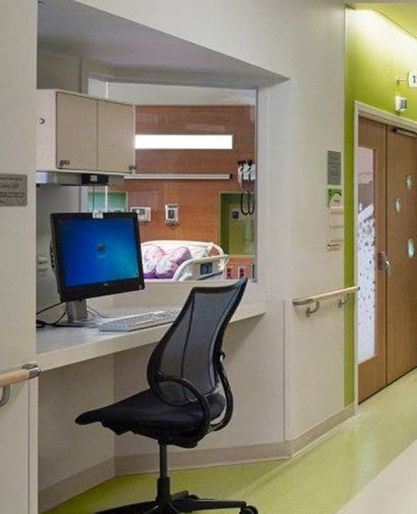 The Futrus Casework System was chosen to create custom med server cabinets. Each cabinet featured an electronic card reader and lock for access and security.