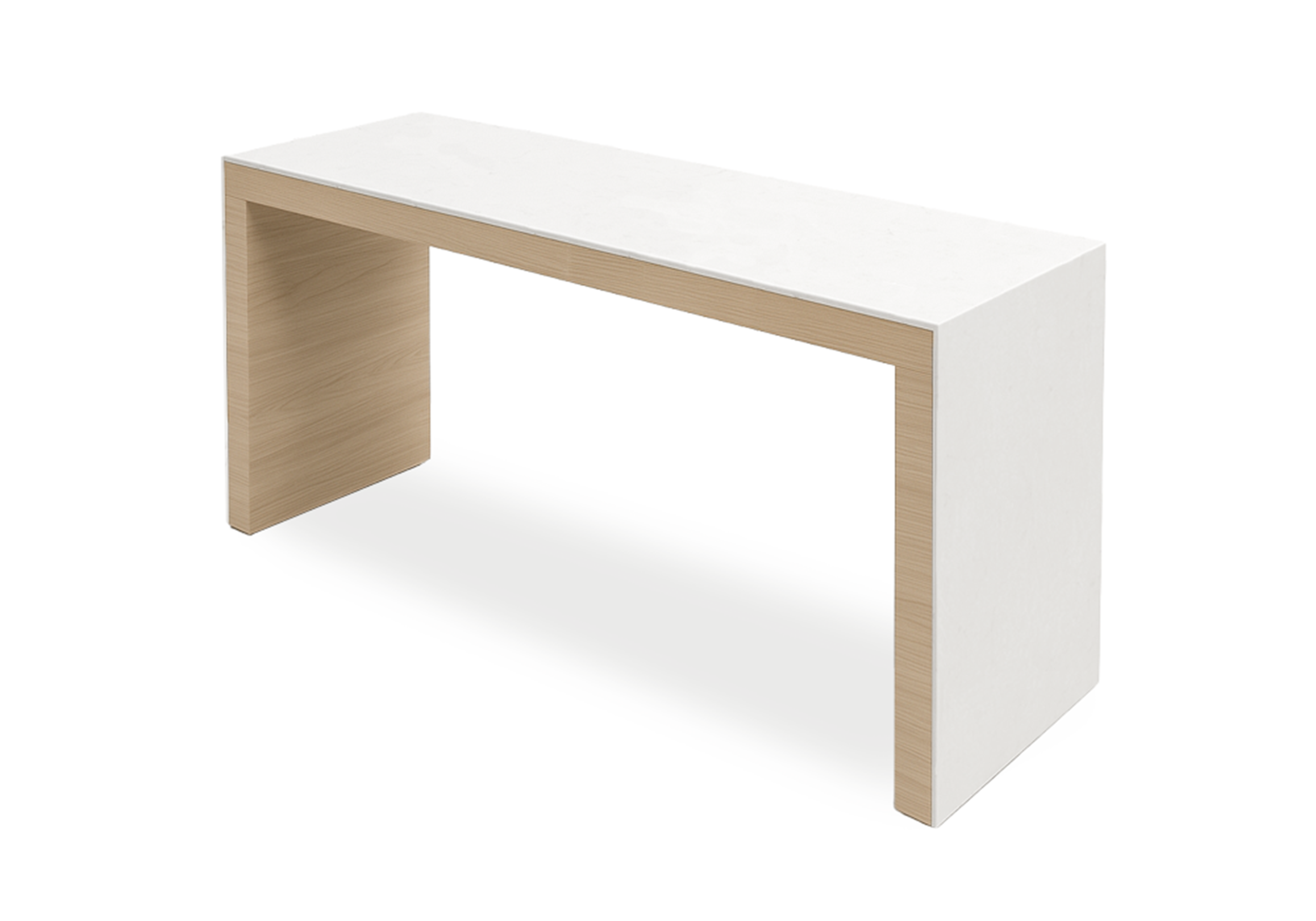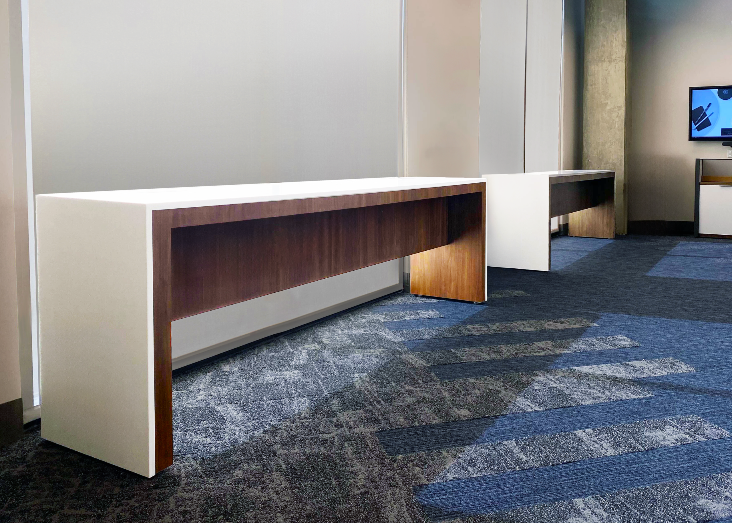 Designed to be the most adaptable Parsons-style table on the market. Featuring a Corian® solid surface table top and waterfall edges with a laminate or thermofoil underside. Futrus® patented metal construction provides greater structural stability over traditional millwork techniques and the ability to span up to 10 feet in length without additional support. Seamless bleach cleanable solid surfaces provide unrivaled durability, cleanability and are food safe certified. Adaptable by size, color, accessories and technology integration, including seamless wireless charging.