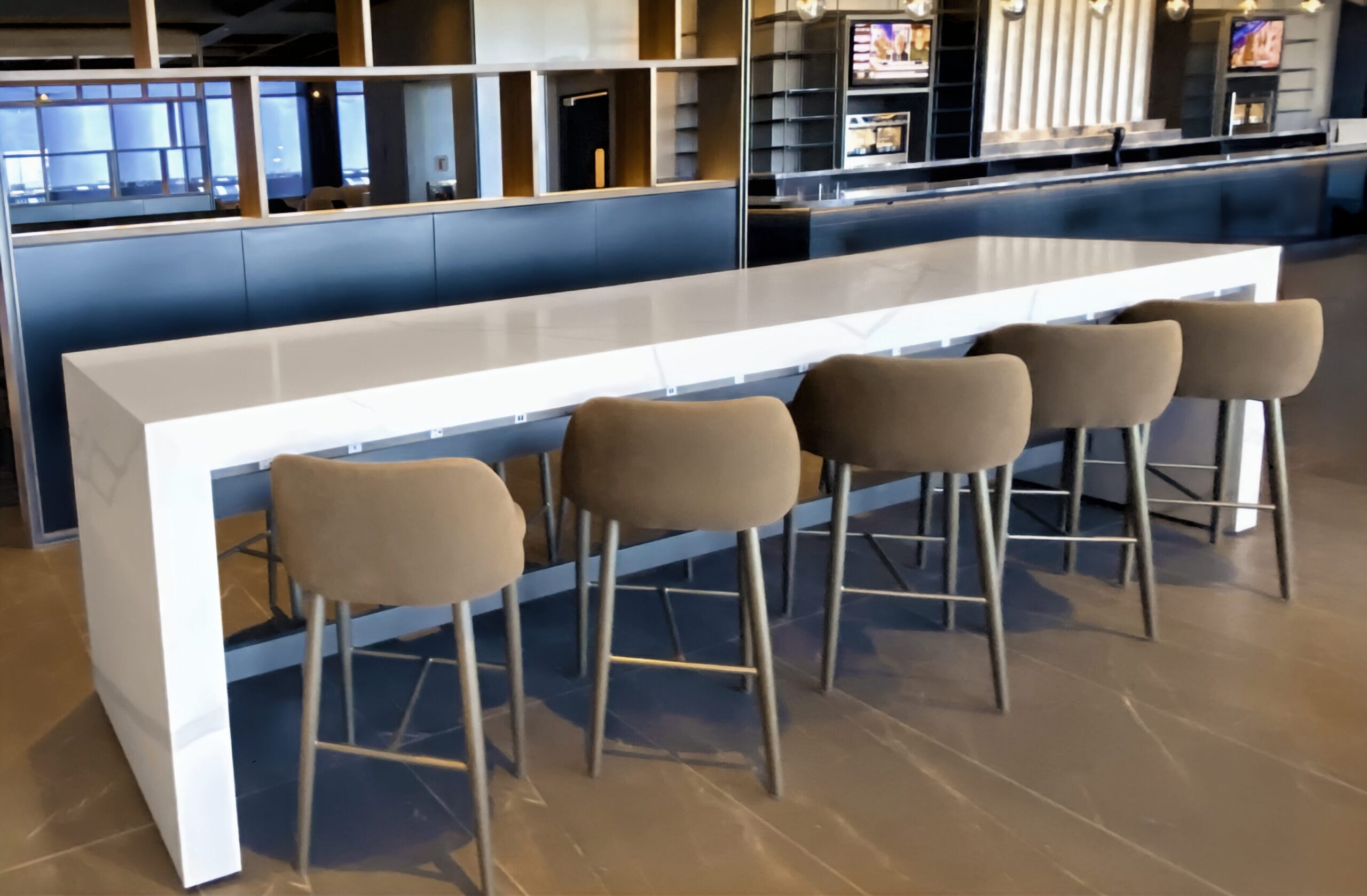Designed to be the most adaptable parsons-style table on the market. Featuring Corian® Quartz surfaces that combine the elegance of natural stone with lasting durability and easy cleanability. Patented engineering enables table lengths up to 10 feet, without additional central support, ensuring a streamlined look. Adaptable by size and color, with optional technology integration, modesty and privacy panels. Ideal for corporate, healthcare, hospitality aviation and higher education environments.