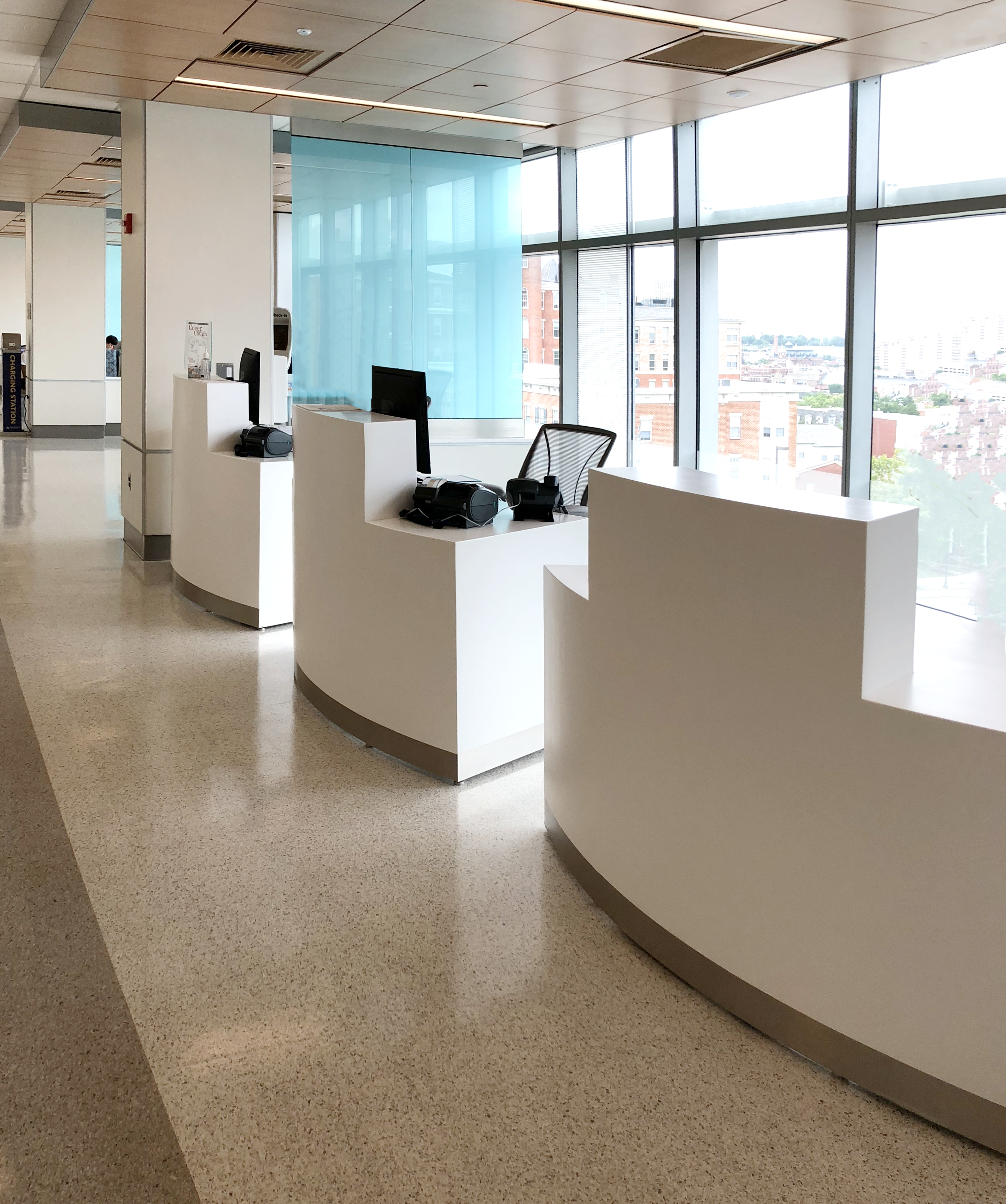The De Desk features a worksurface and drawer fronts made with seamless Corian® solid surface for unrivalled cleanability, microbial growth resistance and durability. Designed to create a truly hygienic workstation and support collaboration. Can be fixed in place or mobile and features a wide range of design options, including technology integration for greater functionality. Ideal for operating rooms, exam rooms, nurse stations and areas where infection control is a priority.