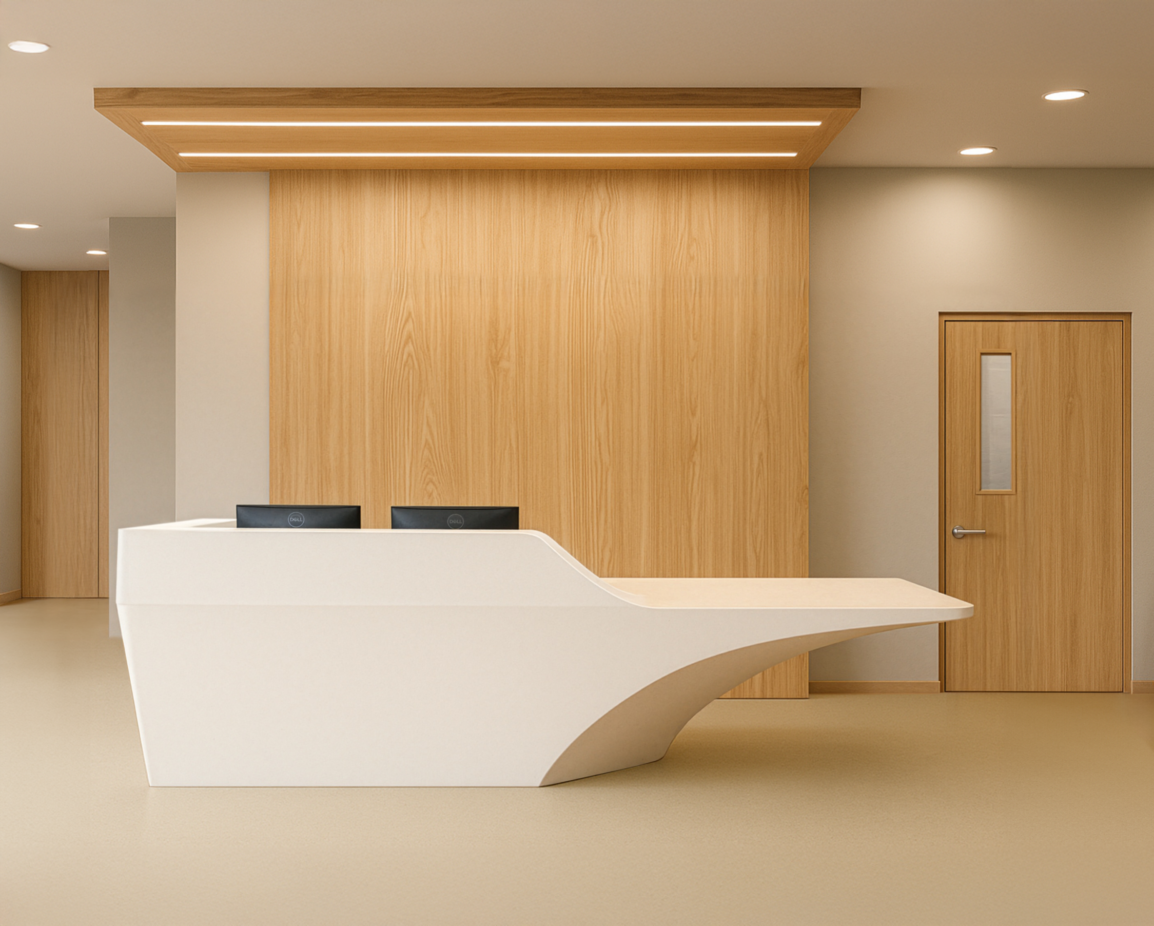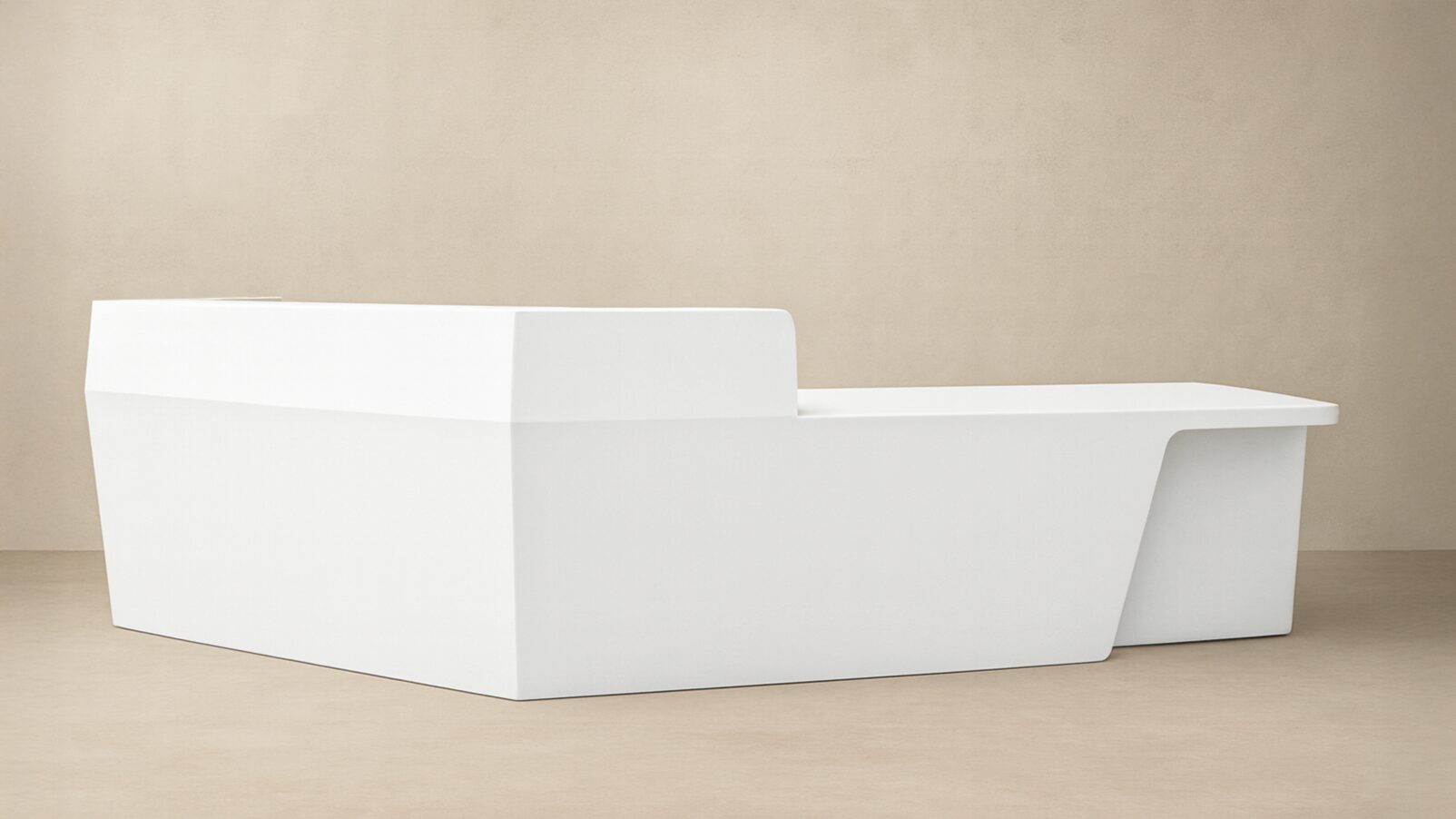 Inspired by the art of transformation, the Rubicz desk offers 16 standard modular components that can be configured to create countless shapes and sizes. Its sculpted, faceted form and seamless Corian® solid surface combine bold design with exceptional durability, hygiene, and easy maintenance. Whether compact or expansive, standard or ADA compliant, the Rubicz Desk adapts effortlessly to your space, ensuring a custom fit without compromise.