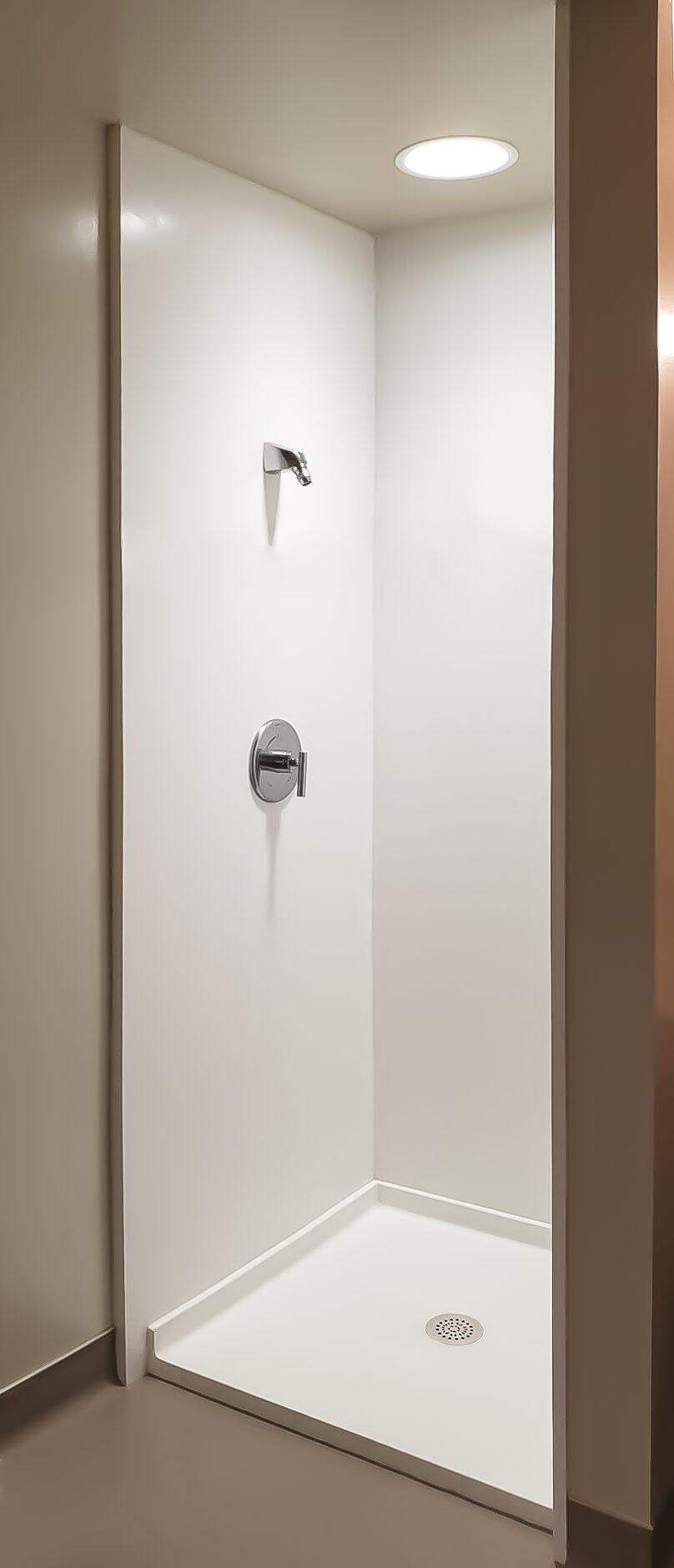 Featuring the Vurso shower base and Infiniti shower walls, both engineered with Corian® solid surface for exceptional hygiene and durability. This turnkey solution offers superior resistance to chipping, cracking, staining, mold growth, impacts and fire spread compared to lower-grade polyester blend alternatives.