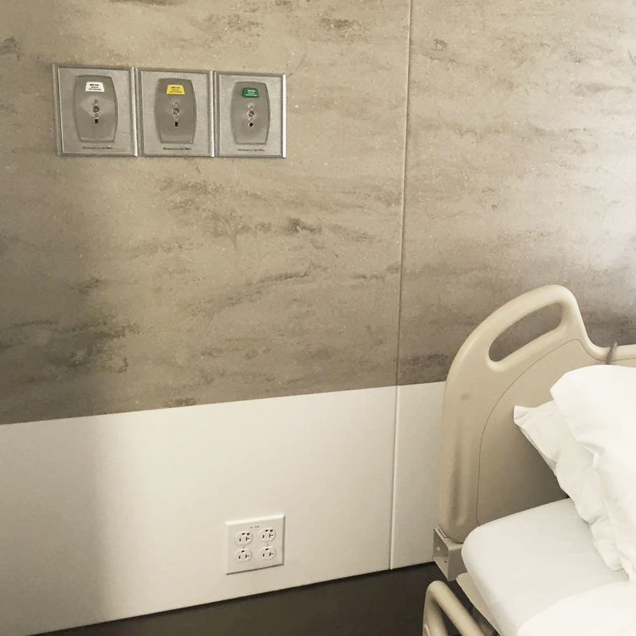 Introducing a new generation of headwalls. Designed with seamless, bleach cleanable Corian solid surface to truly help protect the health of patients and caregivers from Hospital Acquired Infections (HAIs). Each modular panel has a 1” profile depth and is made from seamless, bleach cleanable Corian®, which is GREENGUARD® certified to resist virus, bacteria & mold growth. Corian® panels also resist chipping, peeling, scratching and denting for unrivaled durability. Existing med gas and electrical outlets can be integrated into each panel without costly reconfiguration. Features include a structural rail system for easy panel attachment or removal and lap joint panel edges to prevent liquid penetration. Fully customizable to meet any space, caregiver or patient requirement.