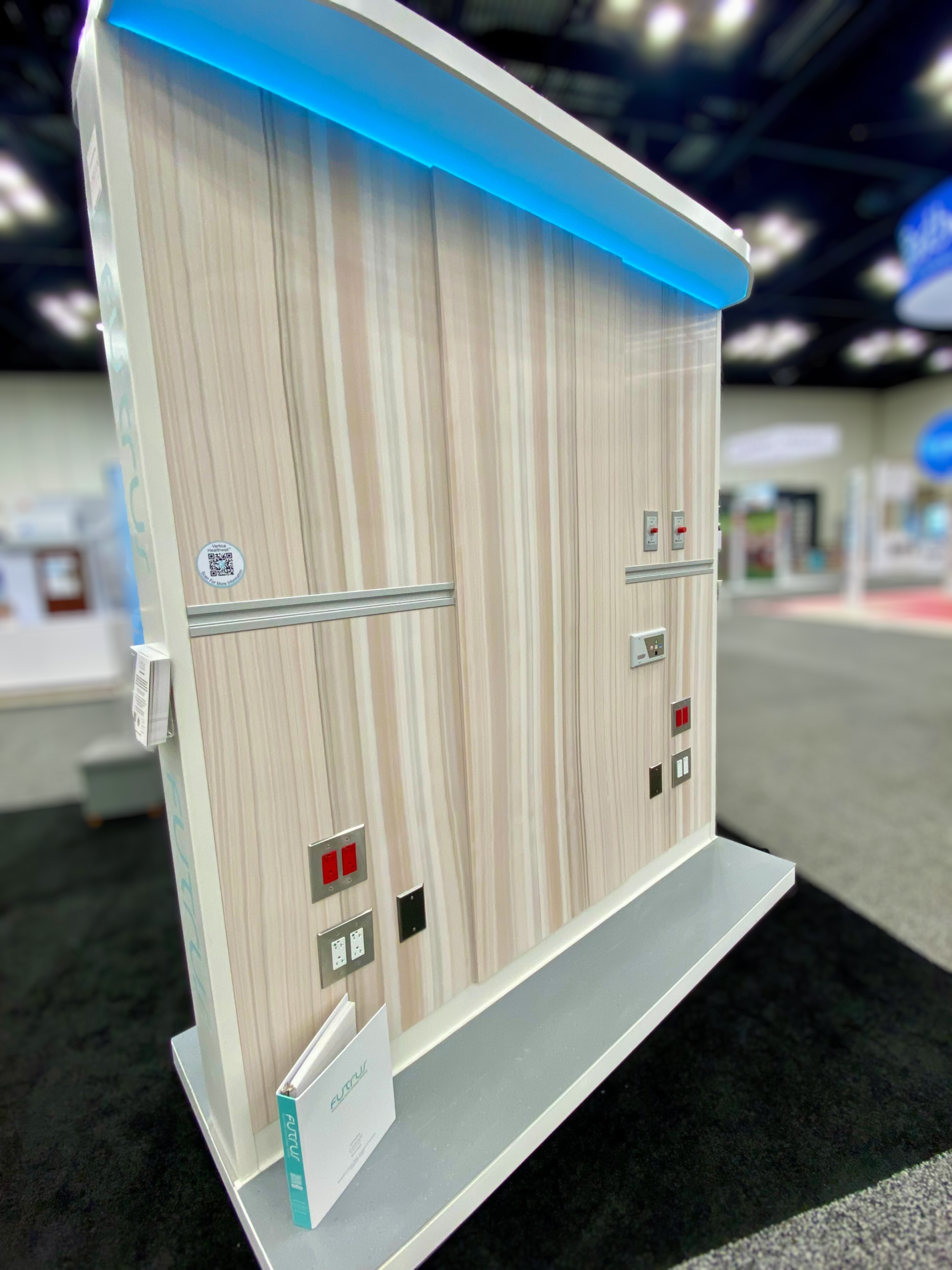 Introducing a new generation of prefabricated headwalls, designed with seamless, bleach cleanable Corian® solid surface, for superior hygiene and durability. Featuring Corian® panels that can span any height or width, including floor to ceiling. Med gas, electricals and rails are customizable to suit exact caregiver needs. Corian® panels can be further enhanced with seamlessly integrated images, patterns and backlighting to promote a calm, healing environment. Corian® surfaces are Greenguard certified to resist the growth of bacteria, viruses and mold for superior infection control. They also resist scratching, chipping, peeling and impacts for greater durability. A patented structural rail system enables easy panel attachment and removal during installation or maintenance. Comes pre-piped and pre-wired for single point connection from behind the unit or above the ceiling when coupled with a chase.