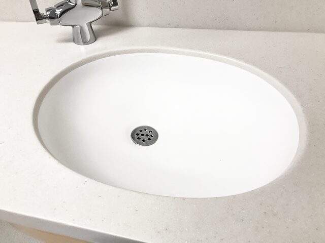 Undermount ADA compliant anti-splashback sinks, made with 100% acrylic solid surface