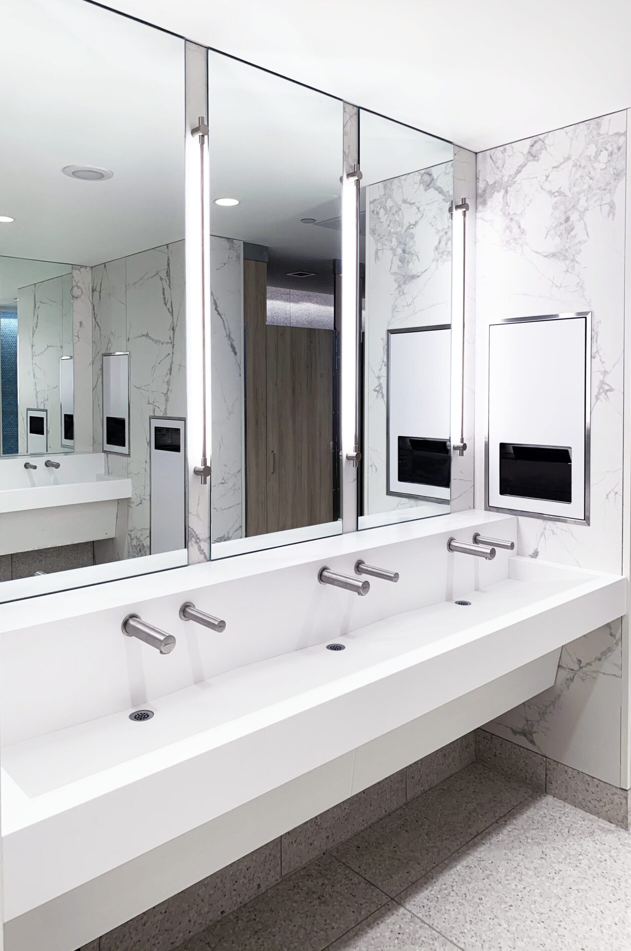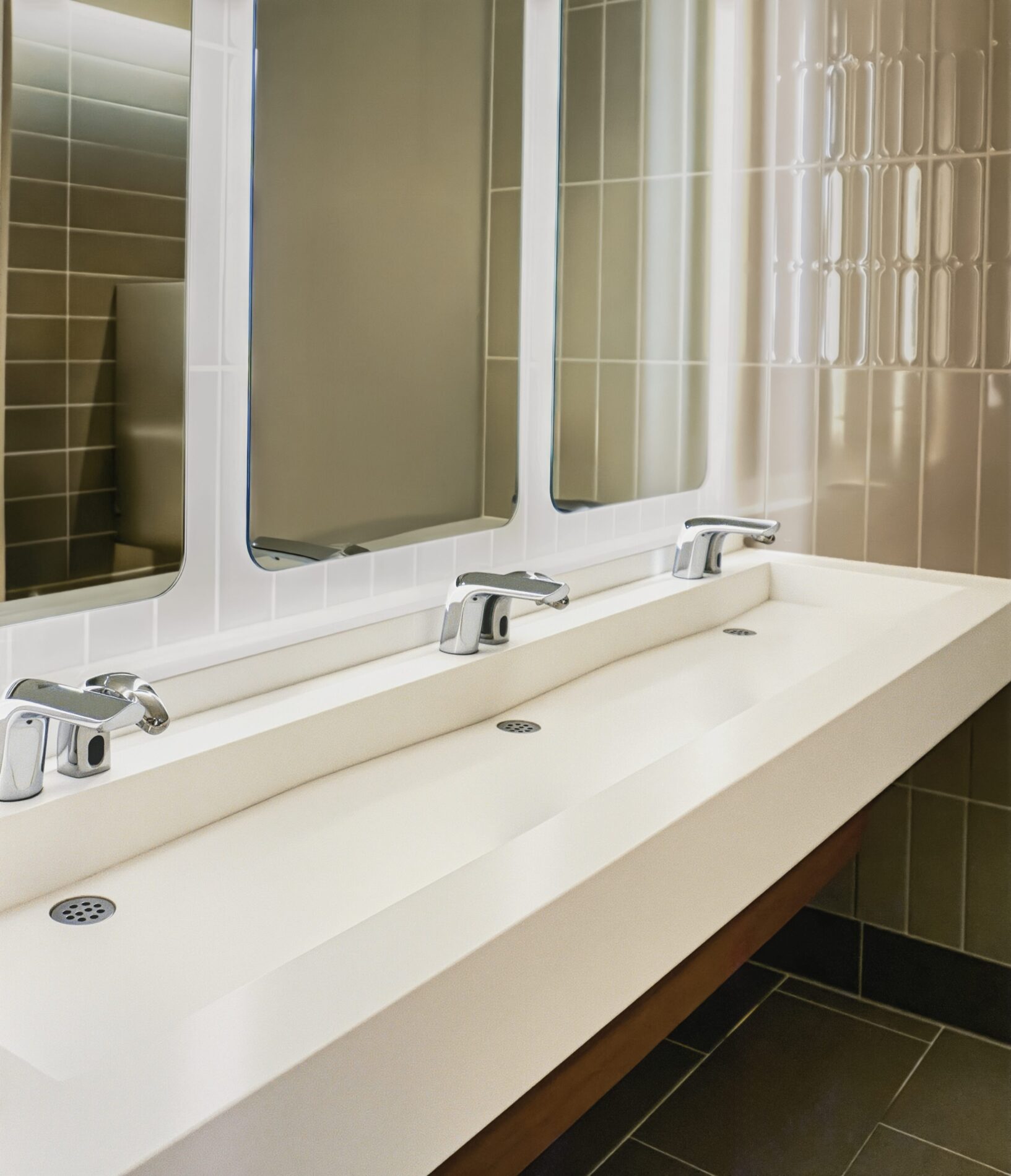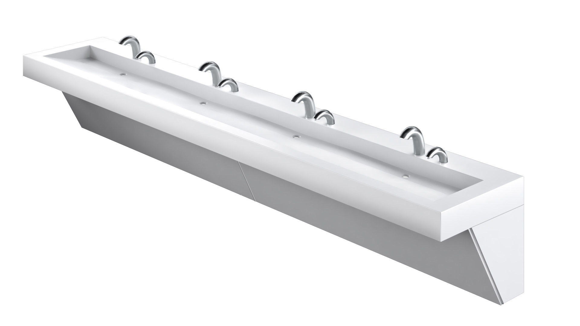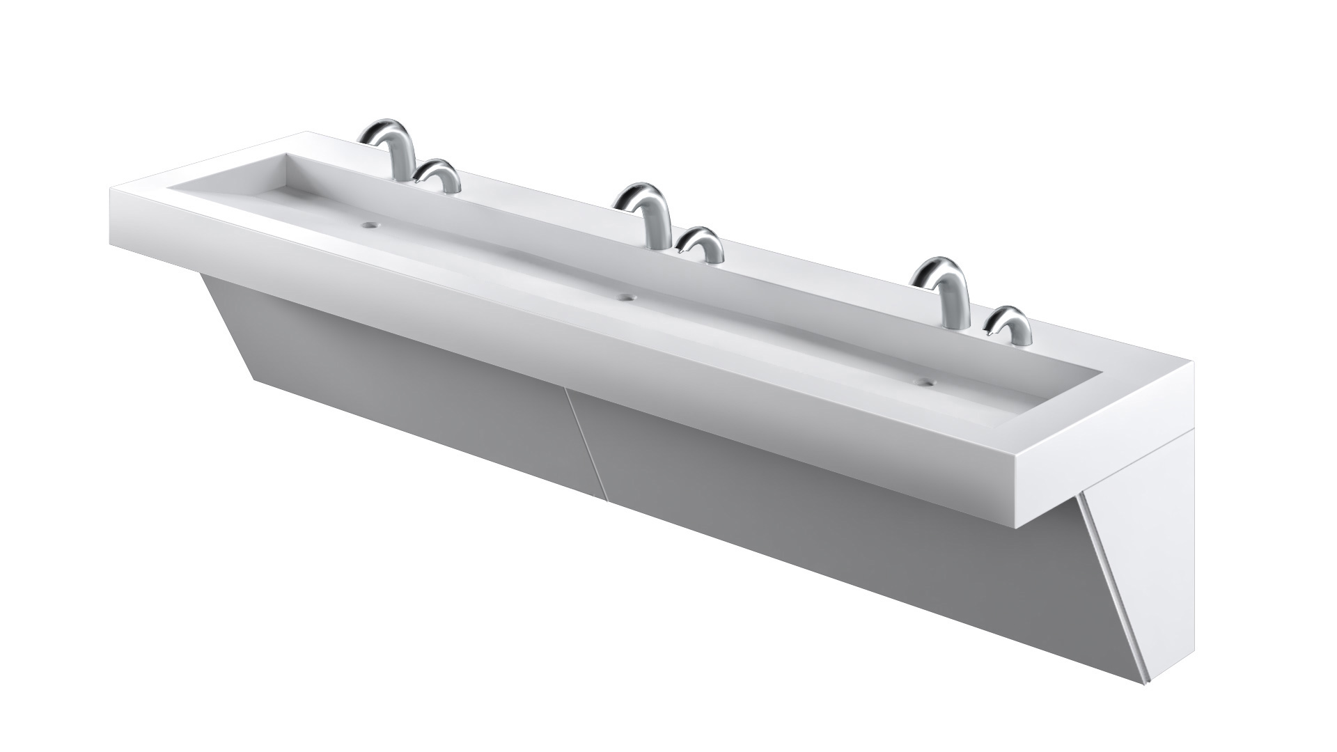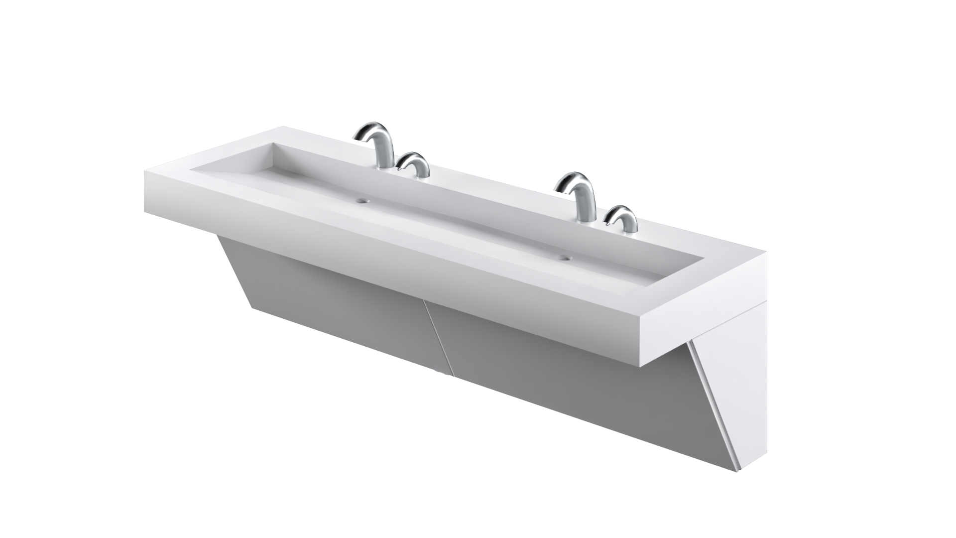 The AquaGUARD Trough Sink Module features a seamlessly integrated sink and countertop, made from 100% Corian solid surface. The sleek, robust design is ideal for all general applications. A graduated basin slope and self draining basin surfaces help eliminate water splash-back and pooling. Sink surfaces are non-porous, bleach cleanable and resist virus, mold and bacteria growth for greater hygiene. AquaGUARD Modules include a removable tamperproof plumbing enclosure for security and easy maintenance. Ideal for commercial and healthcare environments.